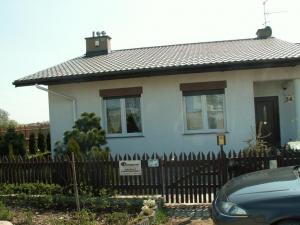 Salon z aneksem kuchennym o pow. 28 mkw, zabudowa kuchenna z wyposażeniem (lodówka, zmywarka, płyta ceramiczna), trzy sypialnie: 8, 9, 12 mkw, z meblami na wymiar. Parkiety, drewniana stolarka, rolety sterowane elektrycznie. Łazienka z wanną narożną i kabiną prysznicową, płytki, pozostaje zabudowa (szafki, lustro). Wc w kafelkach, sedes, umywalka, miejsce na pralkę. Z salonu wyjście na taras (20 mkw), kafelki. Garaż 17 mkw, kafelki, z wyjściem do mieszkania i do ogrodu. Ogrzewanie elektryczne, ciepła woda z pieca Dimplex (Szwajcaria). Dom jest monitorowany, wyposażony w instalację alarmową. Ogród zadbany, z oddzielnym ujęciem wody, nasadzenia, całość ogrodzona.